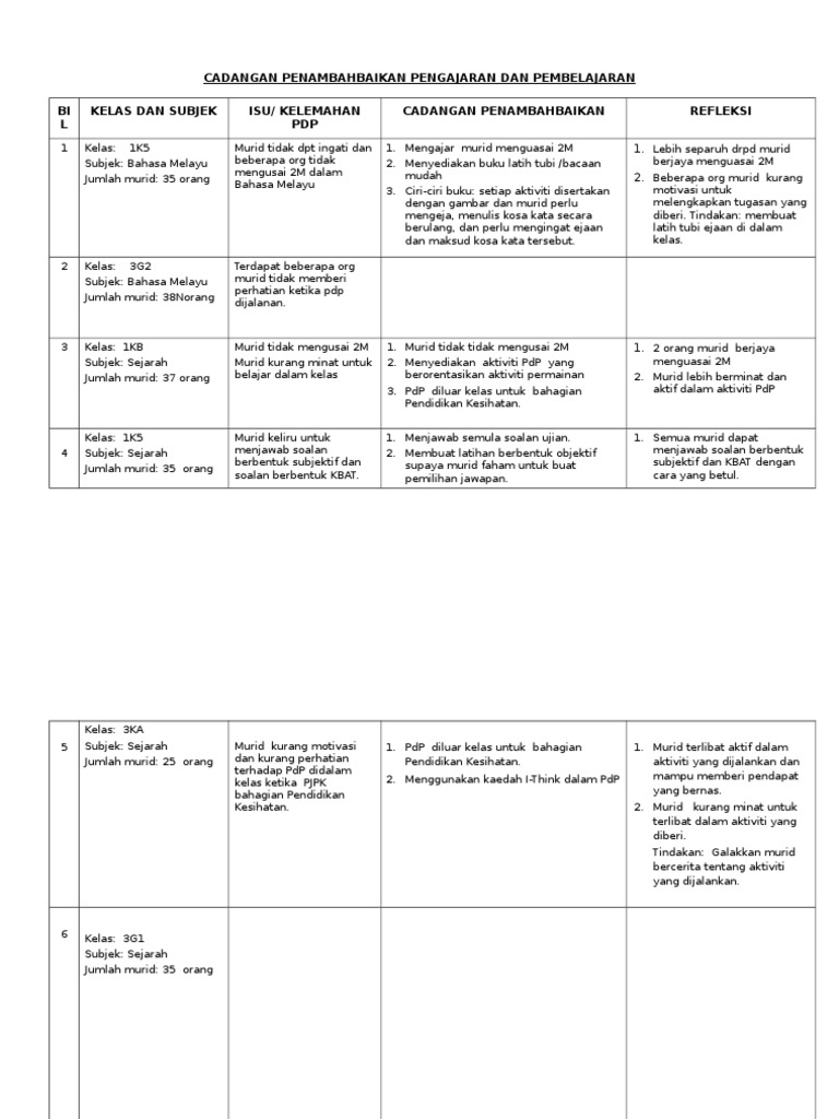 1 cadangan penambahbaikan sepanjang saya menjalankan inovasi kepada murid tahun tiga ini, masih banyak perkara yang perlu saya titikberatkan. Discover penambahbaikan meaning and improve your english penambahbaikan meaning and malay to english translation. Cadangan penambahbaikan pengajaran dan pembelajaran. Mazlan bin bahtiar andi hasrina binti andi panyuki swot analisis kekuatan dapatan kajian terima kasih! Penambahbaikan papers and research , find free pdf download from the original pdf search engine.